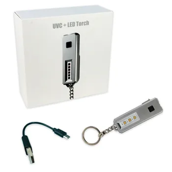 Sterilizer UV light, Mini portable sterilizer, with 500mAH battery, with flashlight, key chain, to disinfect, silver Color