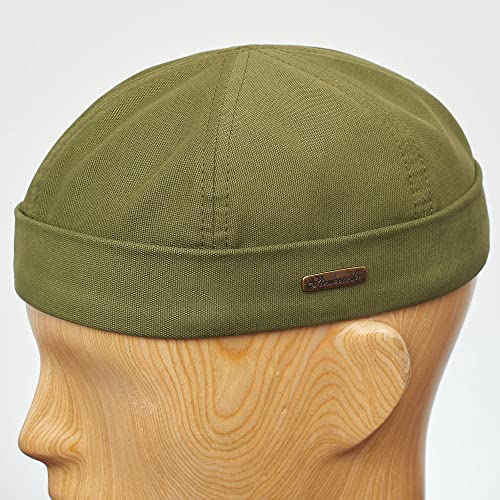 Sterkowski Berretto Docker da uomo | 100% cotone | 54-65 cm, adatto per tutto l'anno, senza falda Verde oliva. 65 cm = XXX-Large