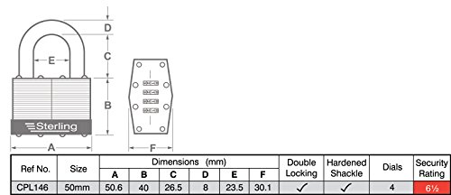 Sterling CPL146 - Lucchetto con combinazione a 4 cifre in acciaio laminato, larghezza 4,6 cm