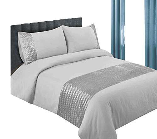 Sterling Mill - set copripiumone con federe, matrimoniale, king e superking, in argento nero crema e verde acqua, Poliestere, Warm Silver, King