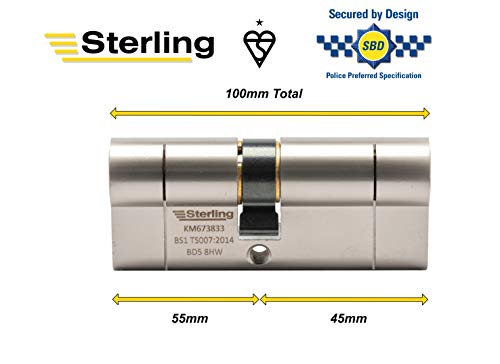 Sterling 45 mm x 55 mm (100 mm) TS007 BS1 1 Star Police approvato da Design Euro Cilindro porta in nichel satinato
