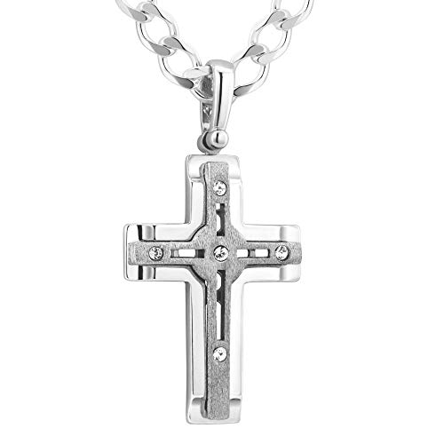 Sterll Uomo Collana Argento Sterling 925 Ciondolo Croce in con Swarovski Elements Packaging Ecologico Idee Regalo per