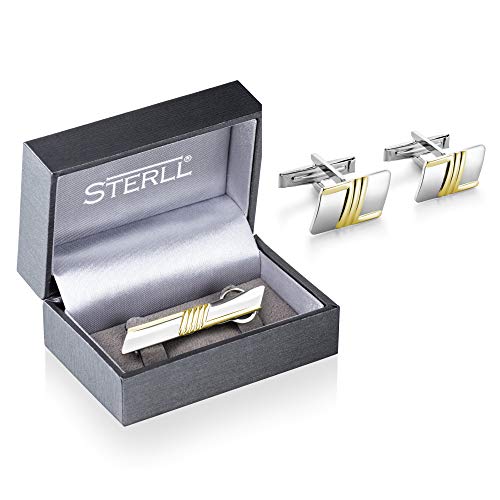 STERLL Uomo Gemelli e Fermacravatta Argento Vero Custodia per Gioielli Regalo Capo