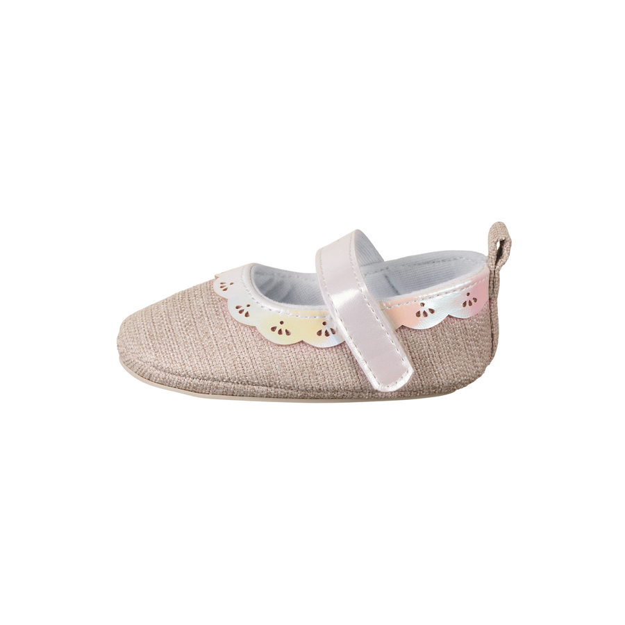 Dettagli del prodotto: Ballerina da bambino in tela e bordo in ecopelle con motivo traforato. Con chiusura a velcro e suola a cuore antiscivolo cucita. Foderata in jersey Materiale e cura: Materiale tomaia: cotone + poliuretano Materiale fodera e rivestimento suola: cotone Suola: cotone Non lavare Non adatto all'asciugatrice Non lavare a secco Non candeggiare