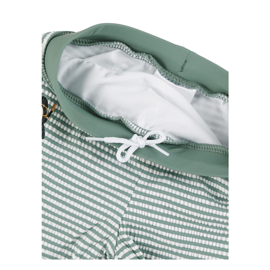 Dettagli del prodotto: shorts in tessuto da bagno con elastan in fantasia seersucker. Con stampa di squali e cordoncino per regolare l'ampiezza della fascia interna in vita Con fodera per pannolini fino alla taglia 86/92 Protezione UV: 50+ Materiale e cura: Materiale tessuto esterno: 53 % poliestere, 42 % poliammide, 5 % elastan. Materiale della fodera: 100 % poliestere Materiale di rivestimento: poliuretano Lavabile a 30° C Non adatto all'asciugatrice Non lavare a secco Non candeggiare