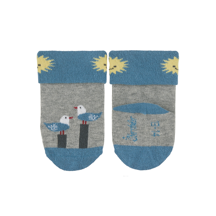 Dettagli prodotto: Calzini per bambini in confezione da 3 con busta Con motivi di gabbiani, anelli e foche Materiale e cura: Materiale: 85% cotone, 12% poliammide, 3% elastan. Lavabile fino a 40° C Asciugare in asciugatrice con carico termico ridotto Non lavare a secco Non candeggiare