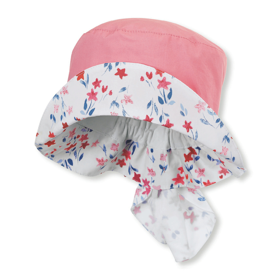 Dalla nuova Sterntaler collezione - qualità che vale la pena vedere! Bel cappello in popeline UV e tessuto di cotone stampato a fiori. Con paracollo regolabile da legare e protezione UV 50+. Dettagli del prodotto: materiale: 100% cotone Lavabile fino a 30 °C