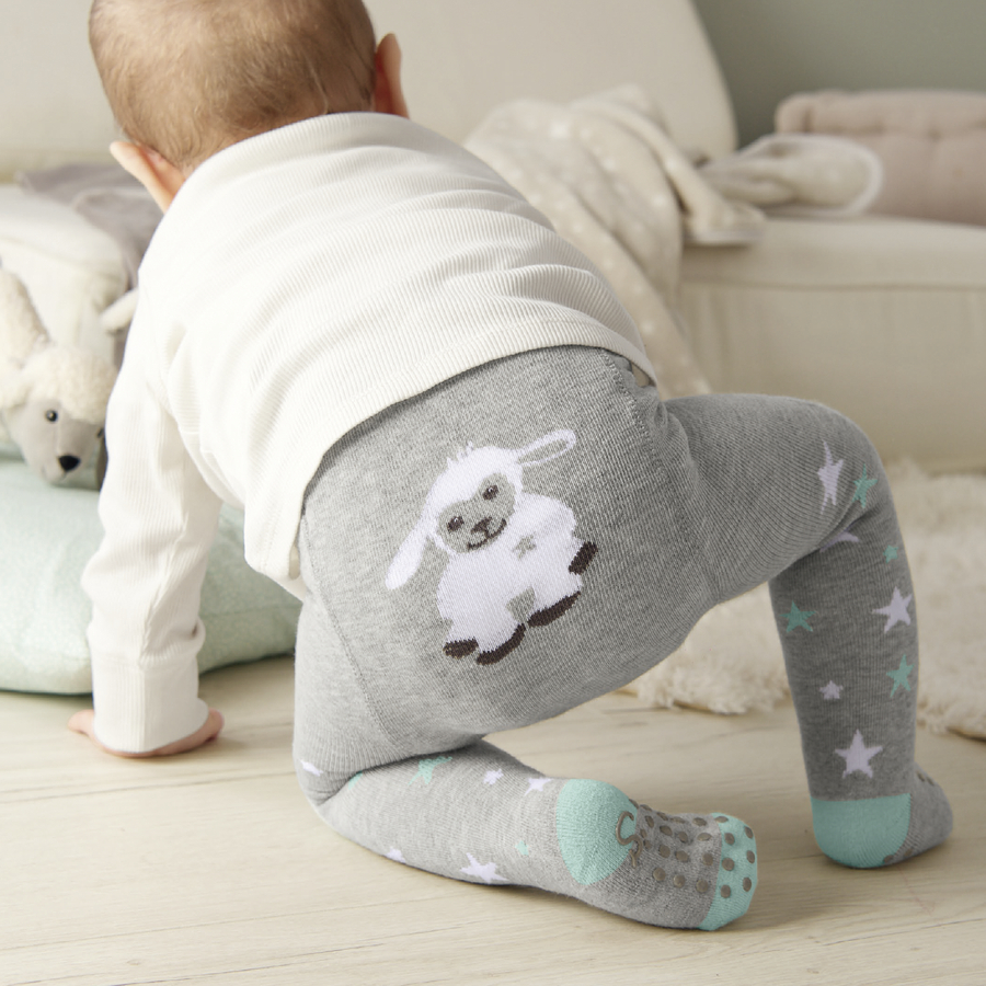 Dalla nuova Sterntaler collezione - qualità che vale la pena vedere. Bellissimi collant striscianti con la simpatica pecorella movente Stanley. Con borchie in ABS nella zona del ginocchio, sul collo del piede e sulla suola, nonché peluche completo nella zona del ginocchio e della suola. dettagli del prodotto: Materiale: 85% cotone, 12% poliammide, 3% elastan Lavabile a 40 °C Essiccazione con carico termico ridotto