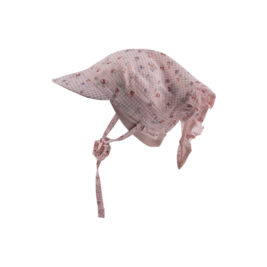 Dettagli prodotto: Foulard con visiera e balze Realizzato in tessuto misto cotone a quadri Vichy Stampato con piccoli fiocchi e jersey Single (biologico) Con nastro da annodare Materiale e cura: Materiale: 53% cotone, 47% poliestere Lavabile a 30° C Non adatto all'asciugatura in asciugatrice Non lavare a secco Non candeggiare