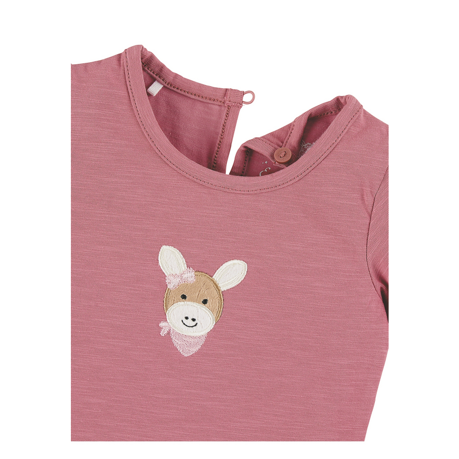 Dettagli prodotto: Camicia a manica corta in jersey di filato fiammato Single Con bottone sulla spalla Fronte con applicazione asino Emmi Materiale e cura: Materiale: 95 % cotone (organico), 5 % elastan Lavabile fino a 40° C Non adatto all'asciugatrice Non lavare a secco Non candeggiare