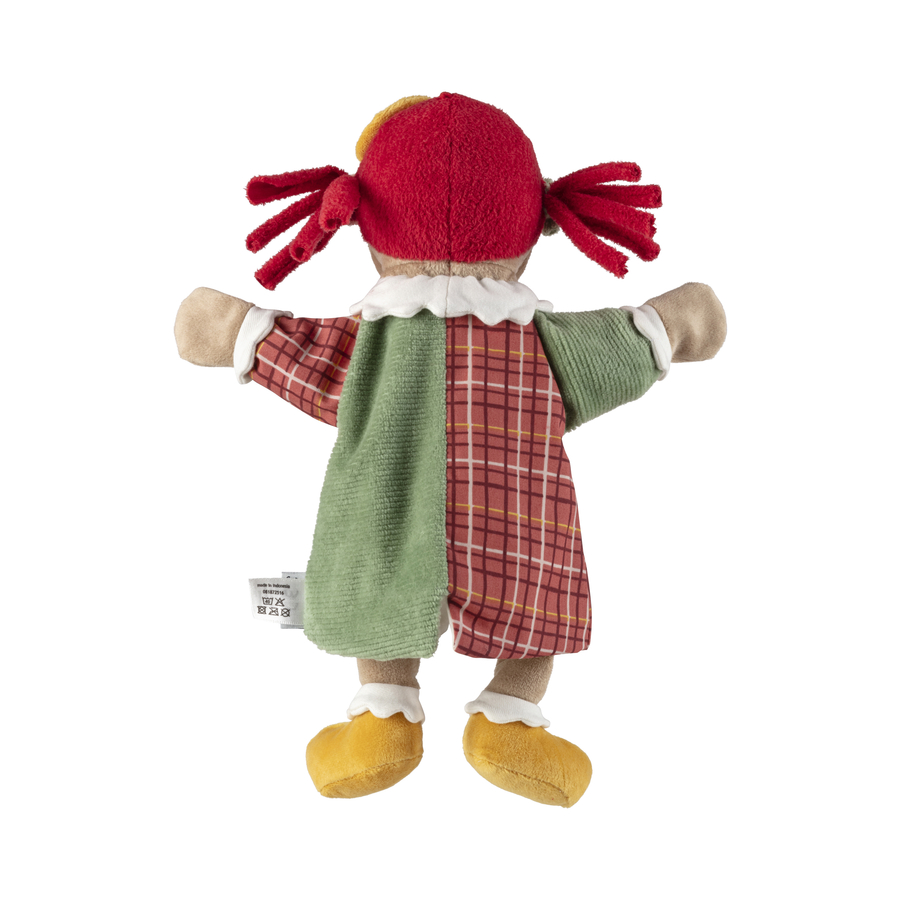 Dettagli del prodotto: Età: da 0 mesi Clown Marionetta a mano con naso da clown in 3D, simpatico cappello e fronzoli Dimensioni e peso: Dimensioni da montato (lunghezza x larghezza x altezza): 28 x 17 x 9 cm Peso: 0,07 kg Materiale e cura: Materiale: pile: 100% poliestere;