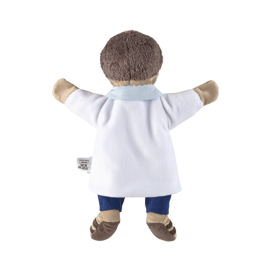 Dettagli del prodotto: Età: da 0 mesi Pupazzo a mano del dottore con stetoscopio 3D Dimensioni e peso: Dimensioni assemblate (lunghezza x larghezza x altezza): 34 x 27 x 9 cm Peso: 0,07 kg Materiale e cura: Materiale: Pile: 100% poliestere;