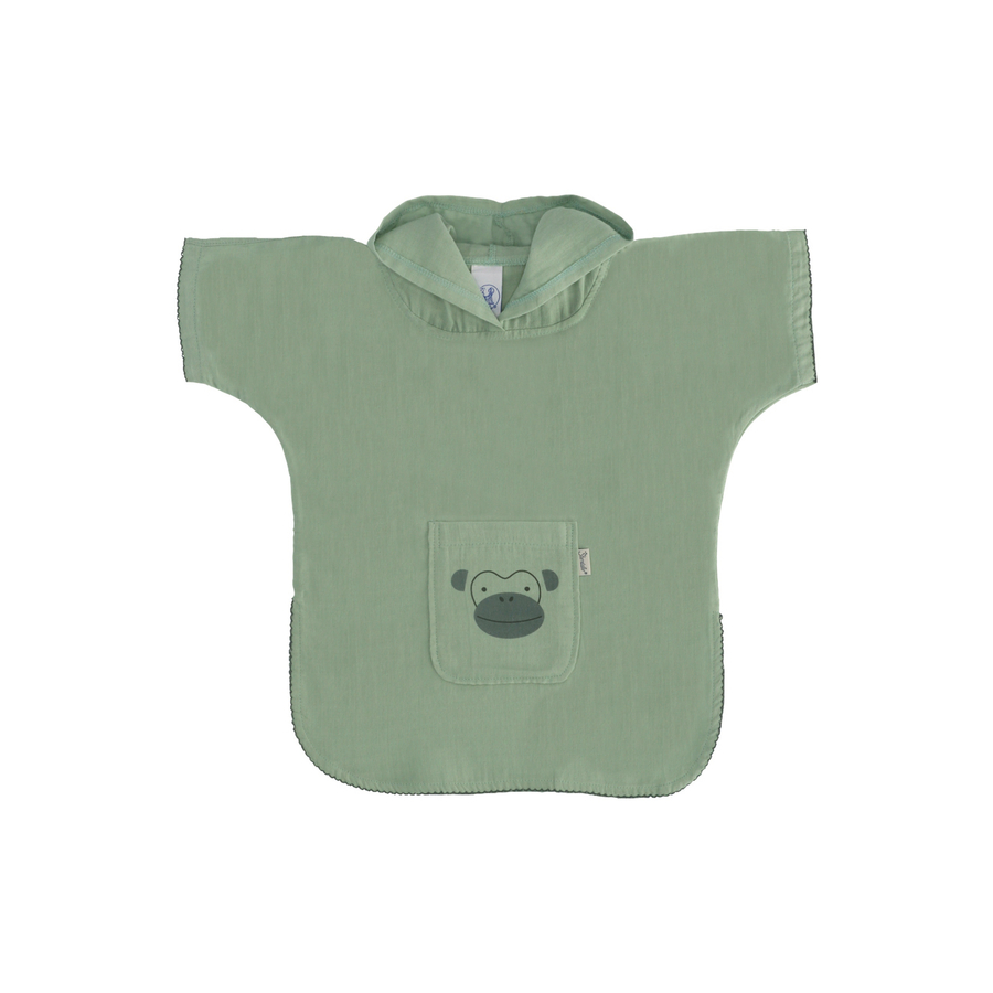 Dettagli del prodotto: Poncho Monkey Albert in mussola di cotone. Con cappuccio a punta e tasca frontale con stampa di teste di animali. Cuciture decorative sugli orli Materiale e cura: Materiale: 100 % cotone Lavabile a 60° C Non adatto all'asciugatrice Non stirare Non lavare a secco Dimensioni e peso: 75 x 60 cm