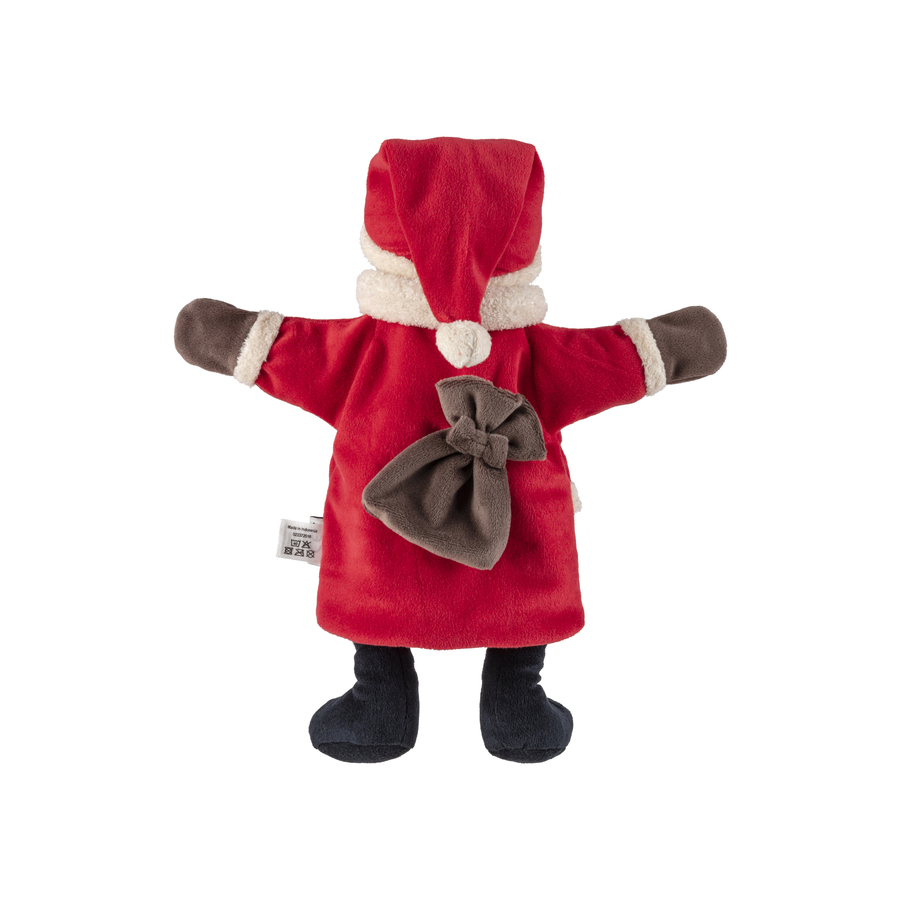 Dettagli del prodotto: Età: da 0 mesi Pupazzo a mano di Babbo Natale, sacchetto regalo sul retro, imbottito e foderato Dimensioni e peso: Dimensioni da assemblato (lunghezza x larghezza x altezza): 32 x 27 x 9 cm Peso: 0,07 kg Materiale e cura: Materiale: Pile: 100% poliestere;