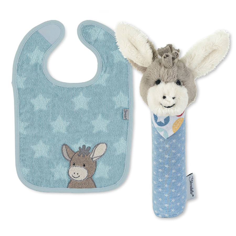 Il set regalo Emmi è composto da un peluche con sonaglio, superficie di presa e un bavaglino in velcro. Il set regalo è perfetto per il battesimo o la nascita. Dettagli del prodotto: Dimensioni della superficie di presa (lunghezza x larghezza x altezza): 18 x 11 x 5 cm Dimensioni bavaglino in velcro (lunghezza x larghezza x altezza): 38 x 26 x 0,5 cm Materiale sonaglio: Peluche: 100 % cotone, Jersey: 100 % poliestere Materiale bavaglino in velcro: Panno di spugna: 100 % cotone Età: da 0 mesi