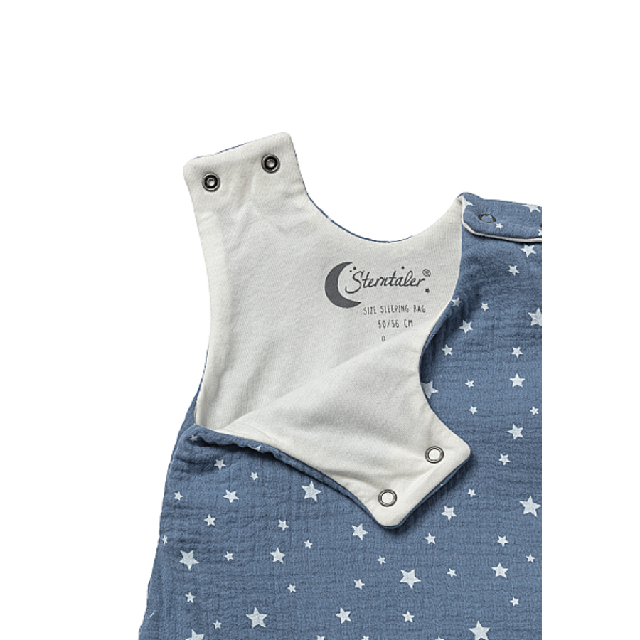 Dettagli del prodotto: Sacco a pelo leggero con stampa di stelle all-over La pratica zip a 2 vie facilita il cambio del pannolino Il taglio ampio offre ampia libertà di movimento Valore TOG: 0,5 Età consigliata: dalla nascita Materiale e cura: Materiale: Tessuto esterno: 100% cotone Materiale della fodera: 100 % cotone Lavabile fino a 40° C Asciugare in asciugatrice con carico termico ridotto Non lavare a secco Non candeggiare