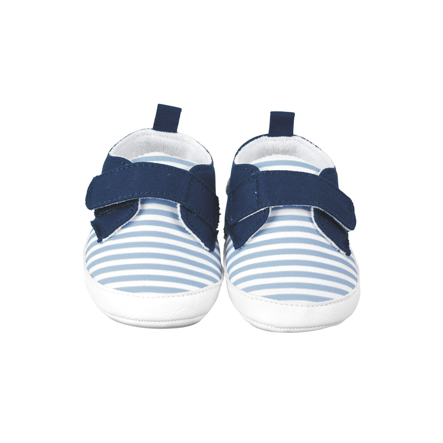 Dettagli del prodotto: Scarpa da bambino in tela e tessuto di cotone stampato a righe. Con chiusura a velcro e suola a stella antiscivolo cucita. Foderata in spugna Materiale e cura: Materiale tomaia: cotone Materiale fodera e rivestimento suola: cotone Suola: poliuretano Non lavare Non adatto all'asciugatrice Non lavare a secco Non candeggiare