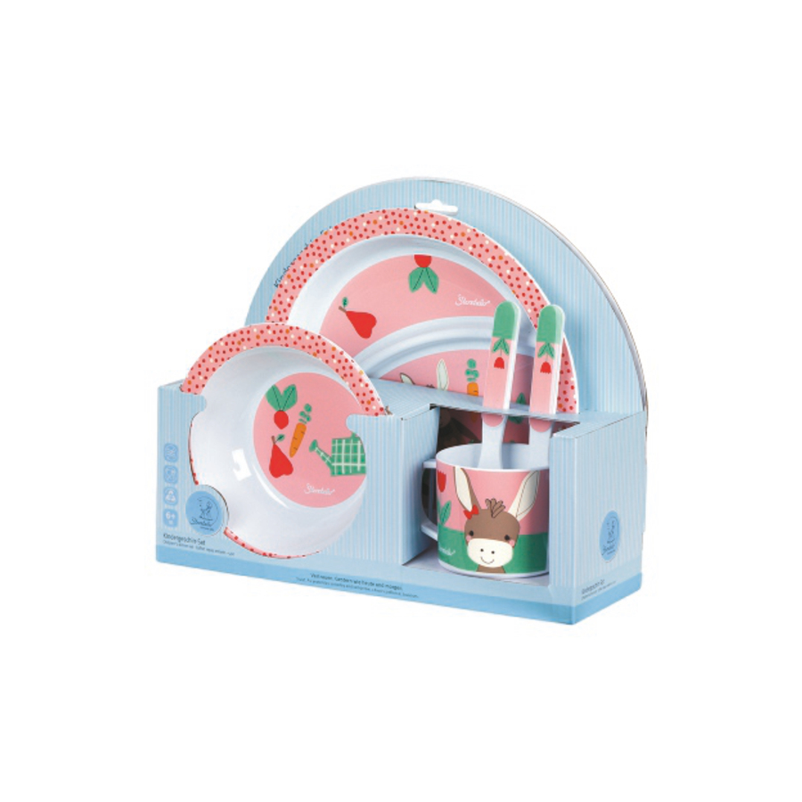 Con il set da tavola per bambini Sterntaler, anche i più piccoli possono imparare a mangiare come i loro genitori. Il set è composto da un piatto, una ciotola, una tazza, una forchetta e un cucchiaio. Il motivo popolare con l'asino Emmilius delizierà il tuo bambino. Questo rende molto più divertente imparare a mangiare! Le stoviglie sono anche lavabili in lavastoviglie e possono quindi essere pulite facilmente. Il set di stoviglie è adatto a bambini dai 6 mesi in su. Dettagli del prodotto: Dimensioni cucchiaio: 14,5 cm Dimensioni forchetta: 13,9 cm Dimensioni tazza: 7,6 cm Dimensioni del piatto del menu: 21,8 cm Dimensioni ciotola: 14,2 cm Contenuto: cucchiaio, forchetta, tazza, piatto da menu, ciotola Pulizia: lavabile in lavastoviglie Cibo-sicuro Età: da 6 mesi Attenzione Non adatto al microonde.
