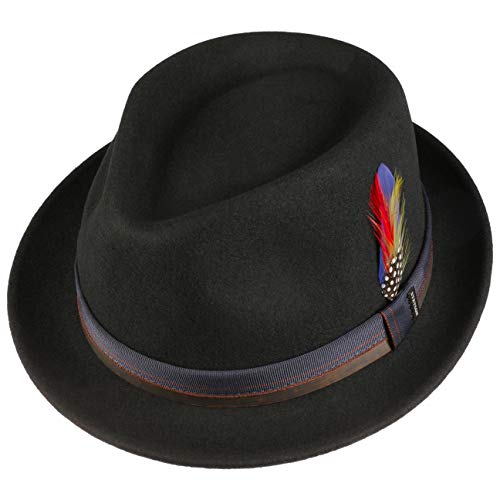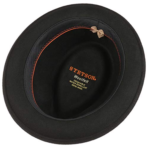Stetson Cappello Decato Trilby Uomo - Fedora di Feltro Outdoor con Fascia in Pelle, Nastro Grosgrain Estate/Inverno - XXL (62-63 cm) Nero