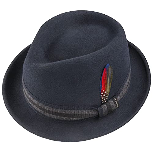 Stetson Cappello di Feltro Turell Player Uomo - Fedora da Trilby con Nastro in Grosgrain Estate/Inverno - XL (60-61 cm) Blu Scuro