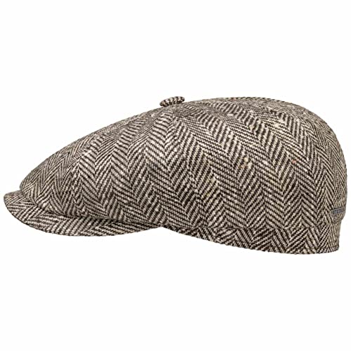 Stetson Coppola Hatteras Herringbone Silk Uomo - Made in Germany Berretto di Seta Newsboy Estivo con Visiera, Fodera, Fodera Primavera/Estate - 63 cm Marrone