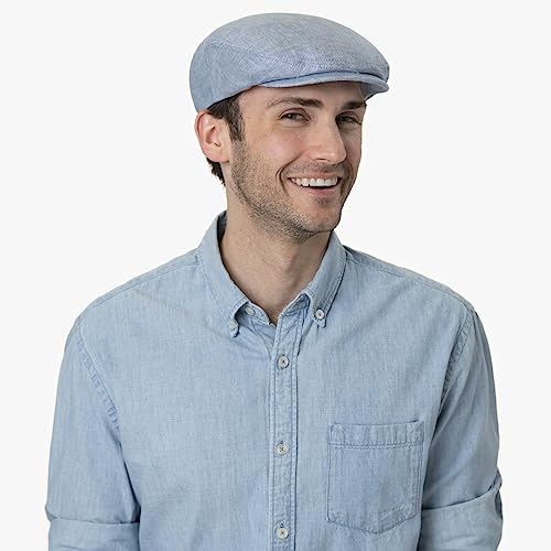 Stetson Coppola Just Linen Donna/Uomo - Made in The EU Berretto Estivo Lino Cappello Piatto con Visiera, Fodera Primavera/Estate - 57 cm Blu