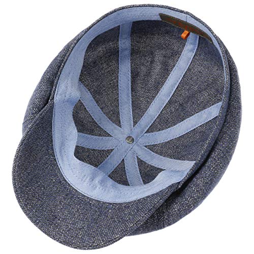 Stetson Coppola in Lino Hatteras Oakhurst Uomo - Made Germany Berretto Newsboy con Visiera, Fodera Primavera/Estate - 57 cm Blu-mélange