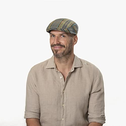 Stetson Coppola Melaco Driver Uomo - Made in Germany Berretto a Quadri Cappello Piatto Lino con Visiera, Fodera Estate/Inverno - 56 cm Verde