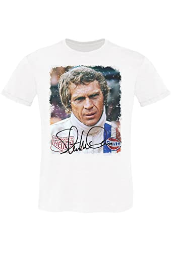 Steve McQueen 11002 T-Shirt Urban Men Uomo 100% Cotone Fiammato BS (as6, Alpha, s, Regular, Regular, White, Small)