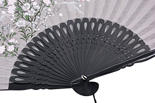 Sthuahe, ventaglio da donna, classico, in seta, dipinto a mano, pieghevole, ventaglio cinese/giapponese con ritagli, 21 cm, Gray