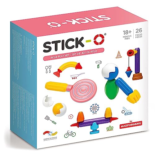 Stick-O Roleplay Magnetic Building Blocks Set. Funky, Chunky Pieces Ideal For Little Hands. Learn As They Play., Rainbow, 902005