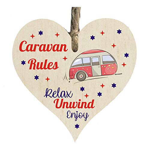 The sticker studio ltd, Targa in Legno a Forma di Cuore con Scritta Caravan Rules Relax Enjoy [Lingua Italiana Non Garantita] htc112
