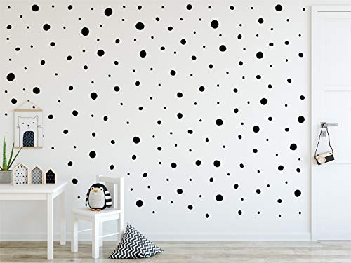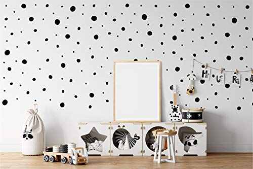 StickerDeen Adesivo da parete in vinile rimovibile a forma di dalmata a pois disegnati a mano, forma irregolare, decorazione per la casa e la cameretta dei bambini, confezione da 152 (nero)