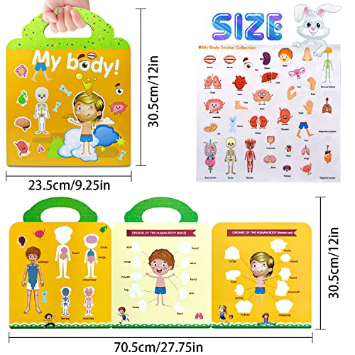 Stickers Bambini Attacca Stacca 2 Set Corpo e Animali Libri Adesivi Bambini Attacca Stacca, Riutilizzabili Stickers Bambini, Pvc Impermeabili Libro Stickers Bambini, Regali Bambini 2 3 4 5 6 Anno