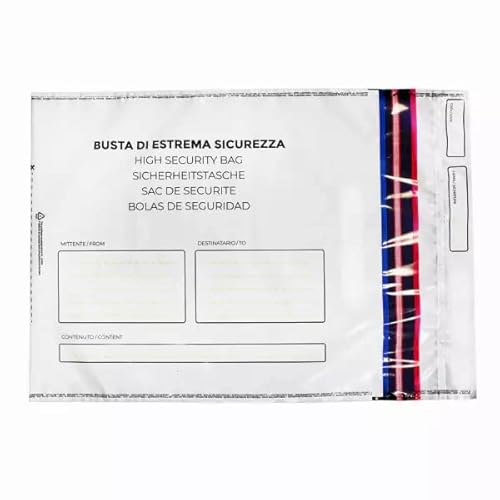 StickersLab - Busta di massima sicurezza con codice numerico/barcode e nastro VOID (500, 270×420+30 mm)