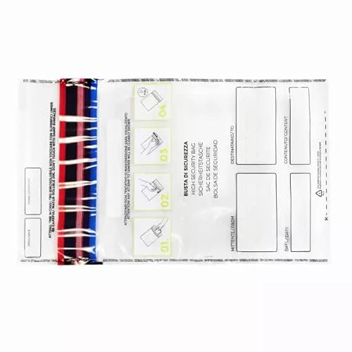 StickersLab - Busta porta valori con codice numerico/barcode, nastro VOID e maniglia (100)