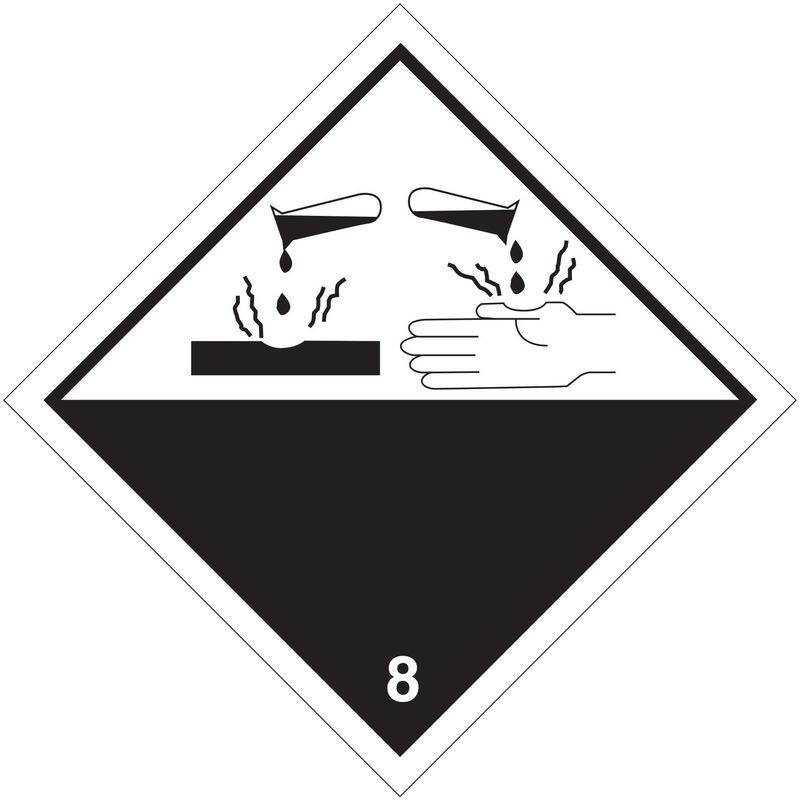 Segnale a norme ADR, RID, IMDG, misura 300x300mm (30x30cm) PVC su supporto adesivo, supporto alluminio Placca di classe 8 per Materie corrosive. Per la marcatura di veicoli, contenitori ed imballi, grazie a queste etichette, potrete identificare materie corrosive. Il pannello in alluminio è provvisto di preforatura per essere utilizzato con il nuovo supporto 6015/AX 6015/LX 6015/LBX conforme a normativa A.D.R. 2009 Materiale disponibile: PVC adesivo oppure supporto alluminio tutti di misura 300x300mm Segnali a norme ADR, RID, IMDG Per la marcatura di veicoli. Materiale disponibile: Adesivo o alluminio Misure disponibili: 300x300 mm