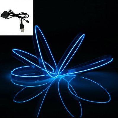 StickersLab - 3 Metri Stringa tubo LED elettroluminescente flessibile a neon per decorazione interni auto (Cavetto USB, Blu)