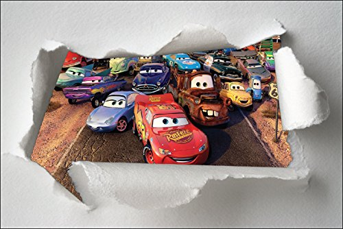 Stickersnews 7611 - Adesivo da parete, motivo carta strappata con soggetti Cars, 30x20cm