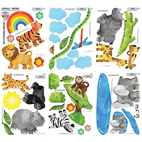 Get Sticking Decor - Adesivi da parete per giungla, rimovibili e riposizionabili, per cameretta, cameretta dei giochi, per ragazzi e ragazze, multicolore, Safr1 (grande)