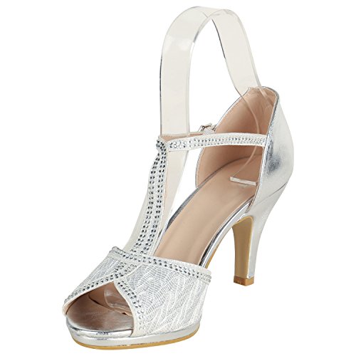 Stiefelparadies Donna Sandali alti Sandaletti con cinturino Strass Glitterato