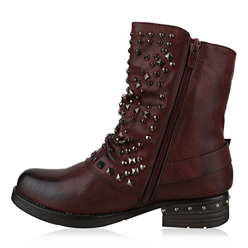 Stiefelparadies Donna Stivaletti bassi Biker Boots Foderata caldamente Rivetti Fibbie