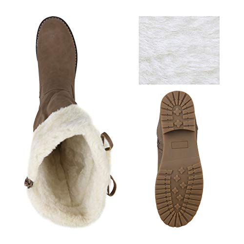 Stiefelparadies Donna Stivali da Neve Foderata caldamente Pelliccia Fiocco 127634 Cachi 39 Flandell