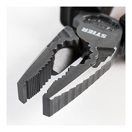Innovativa pinza combinata con grande rapporto di leva con portachiodo e reggifilo integrati nella testa e chiave poligonale per allentare e stringere dadi e viti a testa esagonale