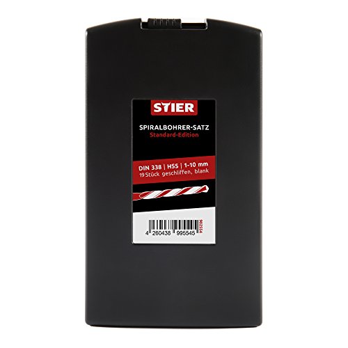 STIER Set di punte elicoidali HSS-G, 19 pezzi, set di punte per metallo, set di punte per acciaio, tutte le misure comuni, campi di applicazione;