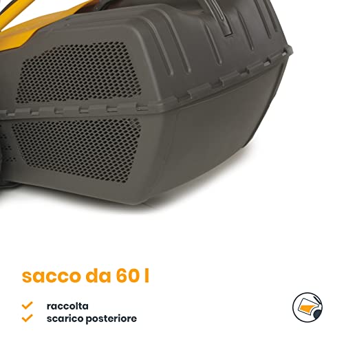 Ottimo per tagliare l'erba di grandi giardini, Svuotamenti ridotti grazie al capiente sacco di raccolta da 60 L con indicatore di riempimento