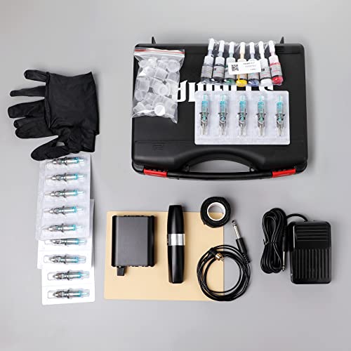 Stigma Tattoo Pen Machine Kit Rotary Set completo con 20 pezzi di cartucce aghi Alimentatore Inchiostro per tatuaggi con scatola di plastica per principianti e tatuatori, Nero