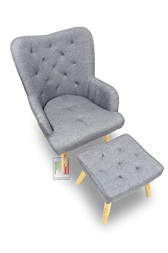 Stil Sedie Sedieshop Poltrona Patchwork Relax Con poggiapiedi pouf sgabellino Gambe in Legno Imbottita in tessuto Modello LISA (Grigio)