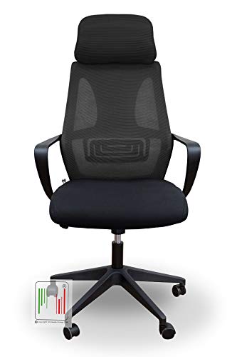 Stil Sedie SedieShop Sedia da Ufficio, Poltrona Girevole, con Poggiatesta e Supporto Lombare, Girevole, Regolabile in Altezza Superficie in Rete Modello LAB (Nero)
