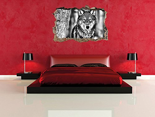 Stil.Zeit Monocrome, Vigile del Lupo svolta a Muro in Look 3D, Parete o Formato Adesivo Porta: 62x42cm, autoadesivi della Parete, Autoadesivo della Parete, Decorazione della Parete